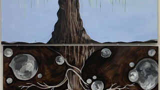 My contribution to Home and Away | Надалеч и вкъщи centers on In Between Here and There, a series of eight acrylic paintings on circular wood slices that explores the experience of existing between cultures and places. Drawing from my life between Vancouver and Sofia, the imagined cityscapes merge architectural elements from both, creating uncanny, non-existent environments that reflect a fractured sense of belonging. The wood slices emphasize cycles of growth and continuity, bridging natural and built worlds. Together, the works occupy a threshold of adaptation and becoming, where identity is not fixed but continually shaped, positioning belonging as an ongoing process rather than a final destination.